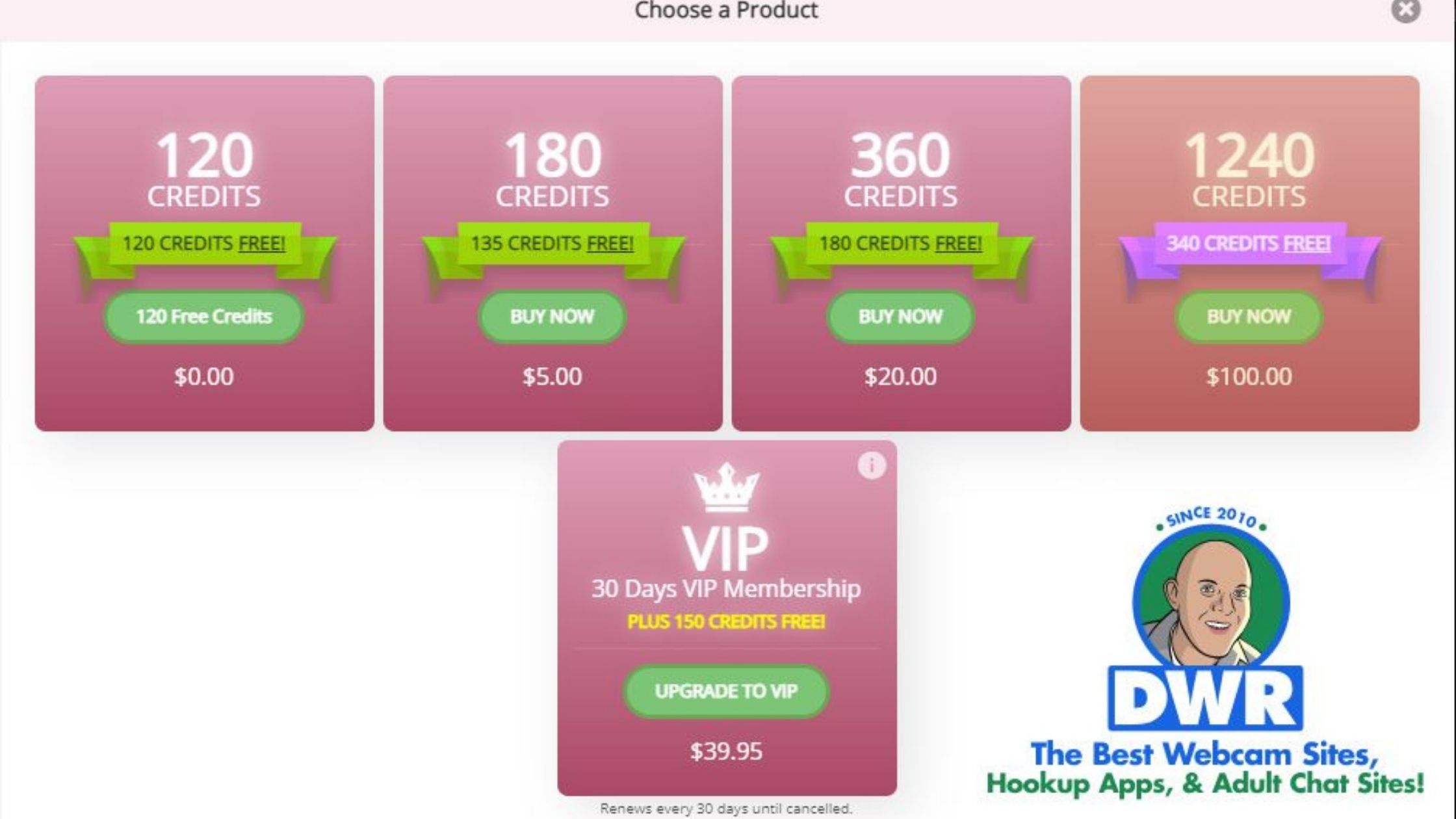 The VIP membership at camdolls.com starts at a whopping price of $40 per month. On top of that, there will be a recurring monthly charge of 150 credits. However, the site is giving away 120 free credits to every new user signing up at the site. But, only after validating your card.