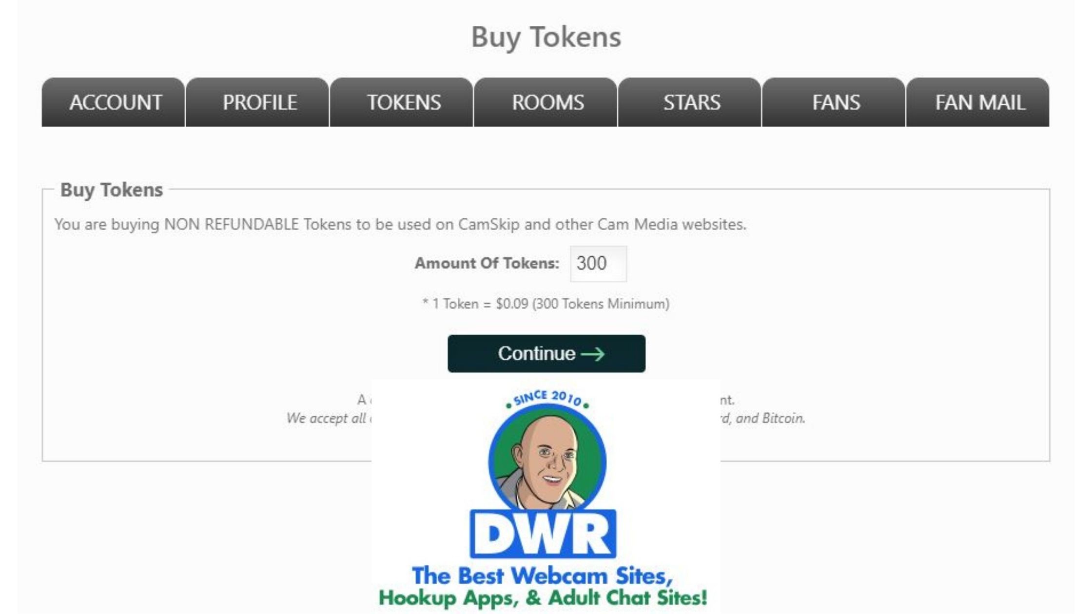 VIP status at the site can be achieved by the users holding 270 or more credits to their names. Each token at camskip will cost around $0.1 and the minimum tokens to purchase at a time is 300.
