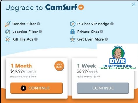 Camsurf costs give the random chat users access to gender filter, location filter, cam2cam private chat, and without any ads.
