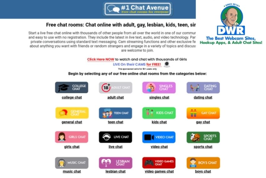 The homepage raises concerns about the legitimacy of chat avenue from the first impression. For example, you don’t set up a kids chat section on an adult chat room site. Pretty dumb, right?