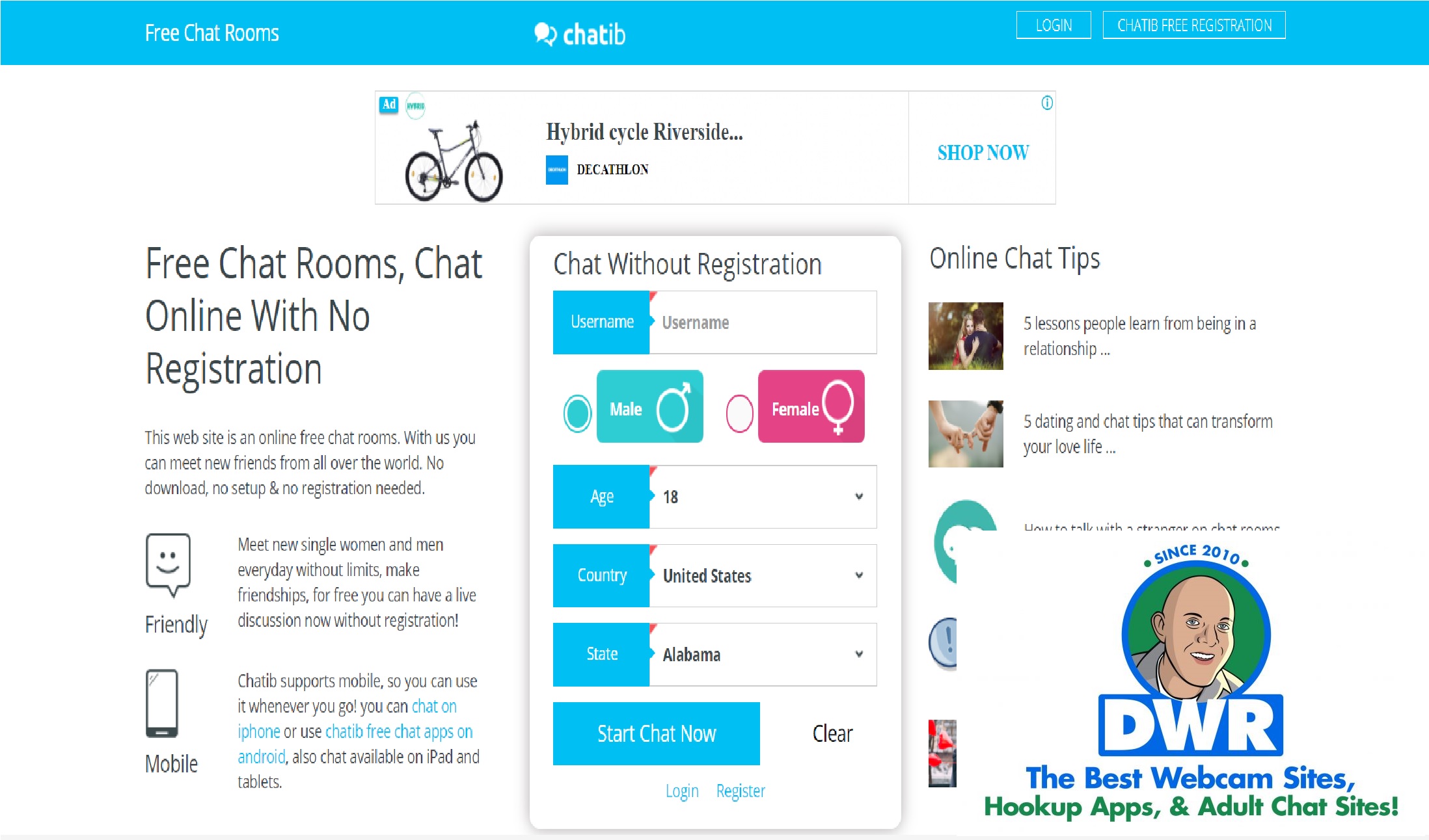 As said earlier, it is one of the rare random chat sites that doesn’t require any registrations to get started. However, the users who want to get signed up on the site as legitimate users can still signup by clicking on the ‘Chatib Free Registration’ tab.