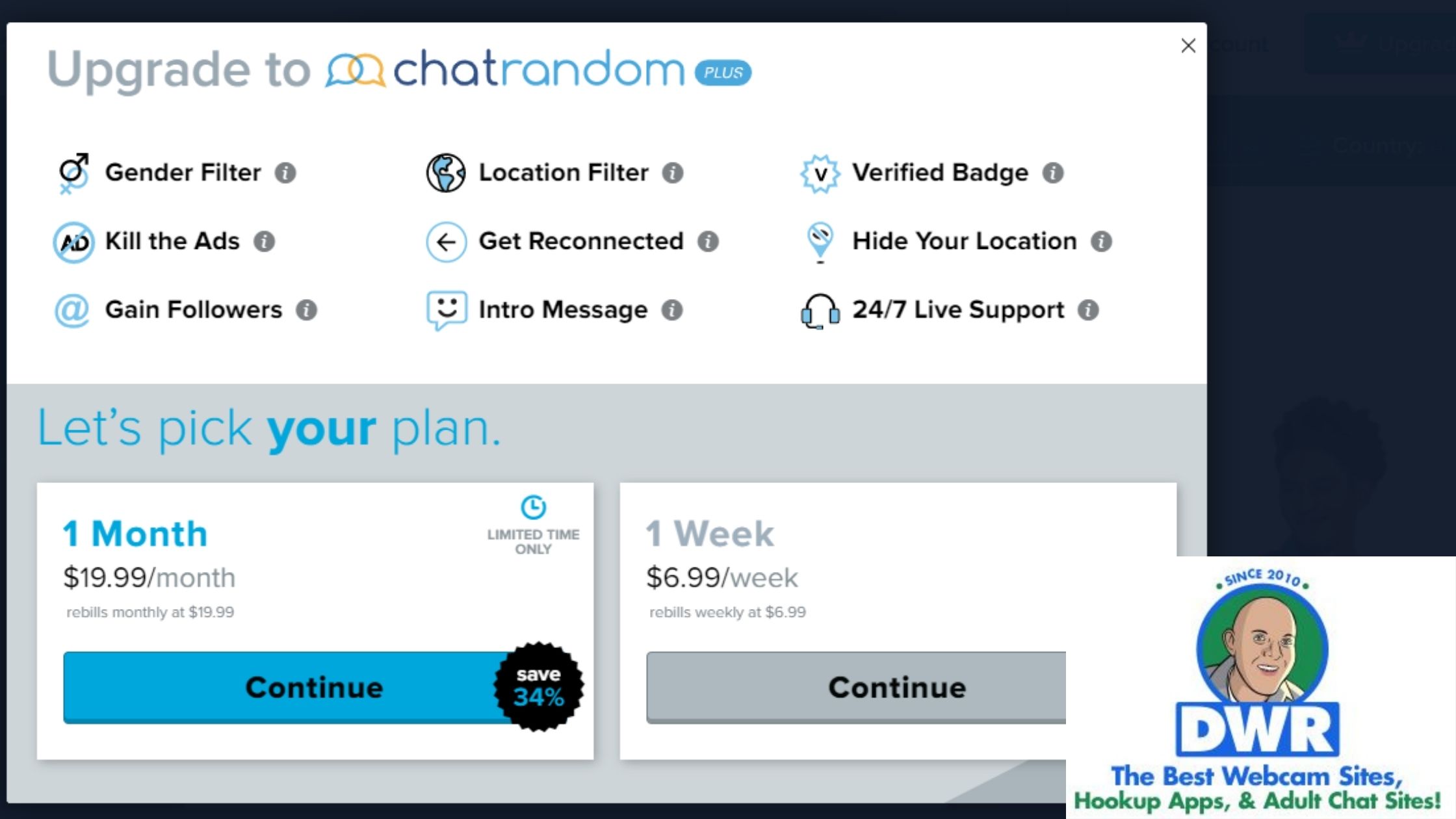 The premium membership at this free video chat site starts at $20 per month. Here are the two pricing plans available for Chat Random Plus or premium membership: