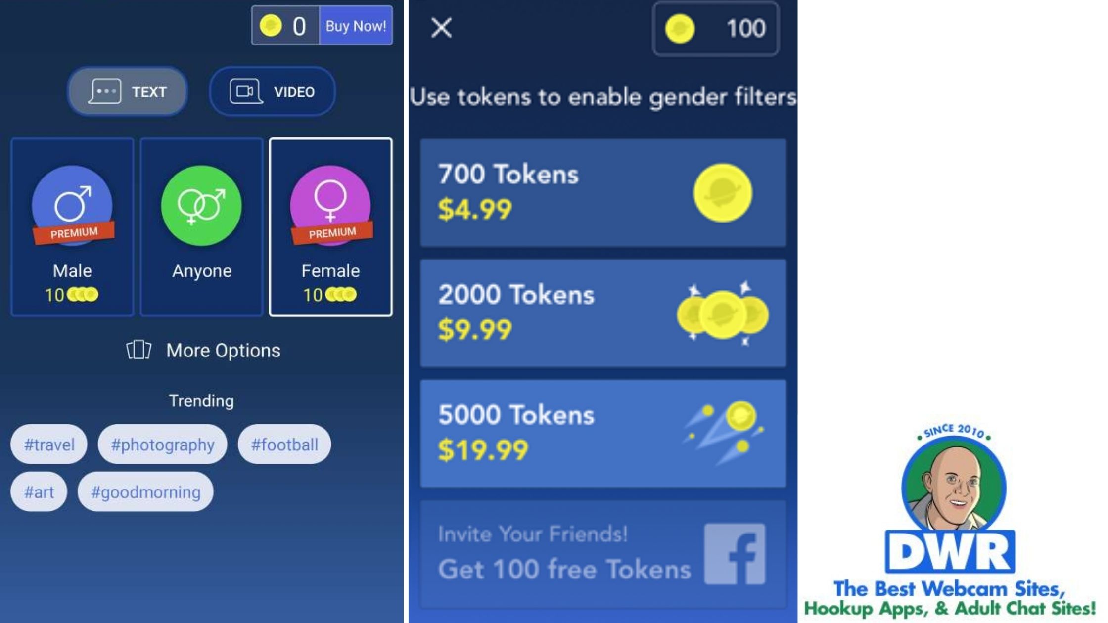 The real bummer is that you need to purchase tokens before choosing anything specific, as 10 tokens each is required to set the results of male and female users.