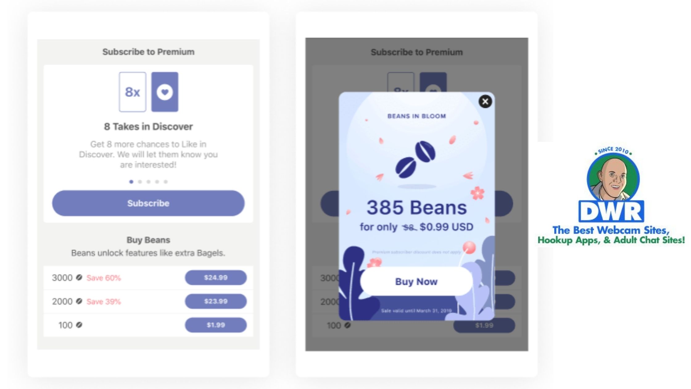 There is something else called premium membership at the site that costs approximately $45 per month along with 6000 beans. Some of the benefits you can avail with this premium membership at the CoffeeMeetsBagel are: