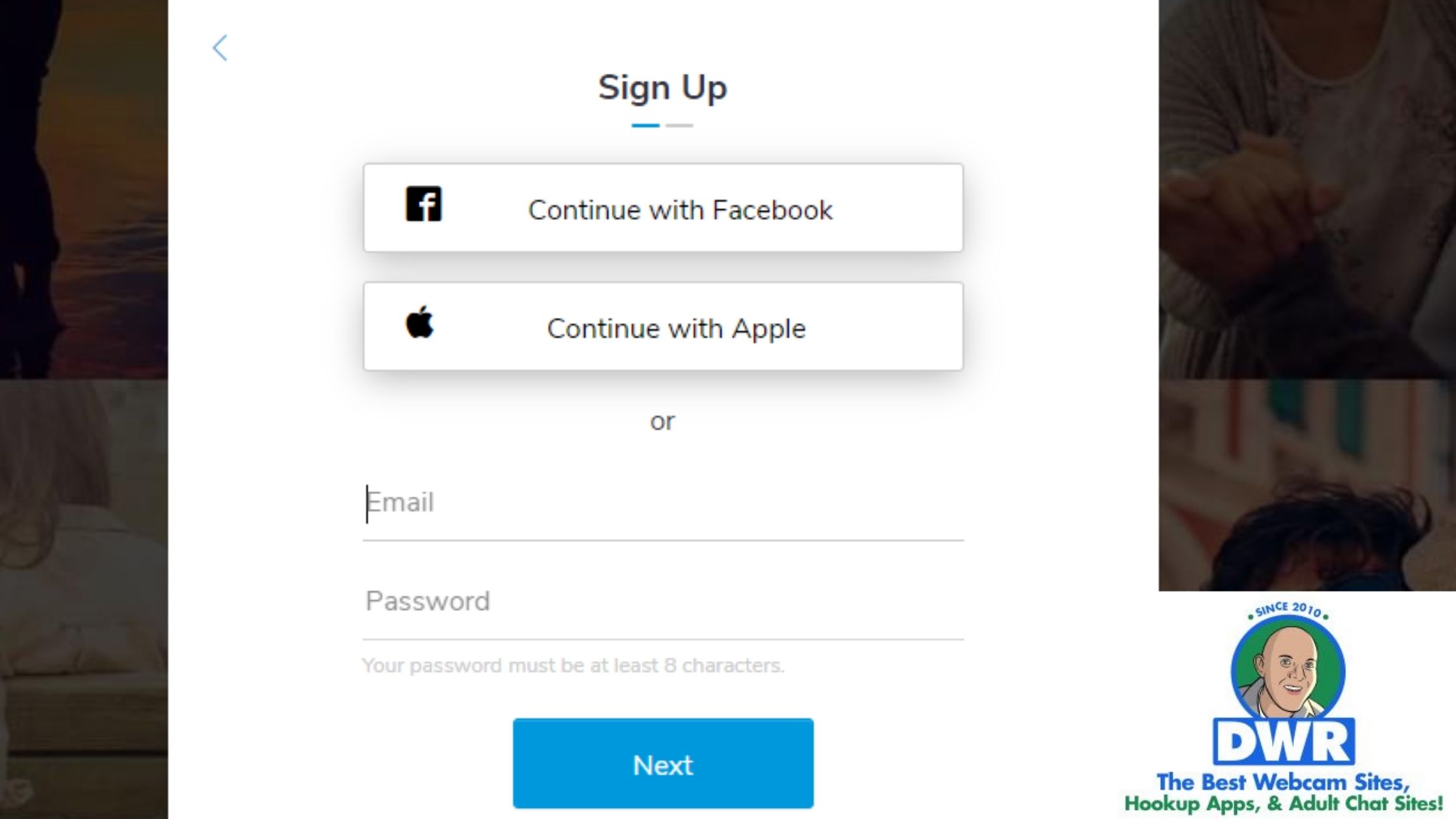 I don’t risk any of my personal accounts to such shady dating sites and thus I prefer signing up using an email address. In the first step, you will be asked to enter your name, gender, date of birth, and zip code.