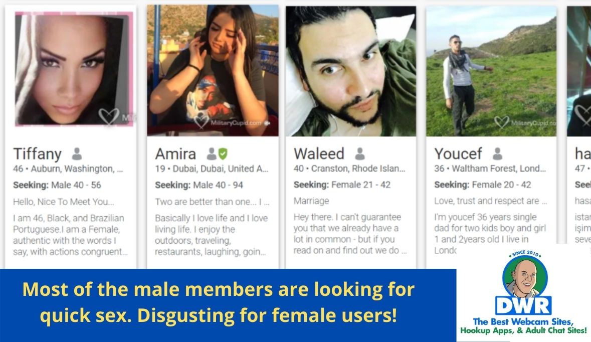 Most of the profiles are repetitive and uninteresting to connect. The military matcher feature could have worked better. We can’t say the entire site is worse, but most of the members are looking for casual hookups and sex.