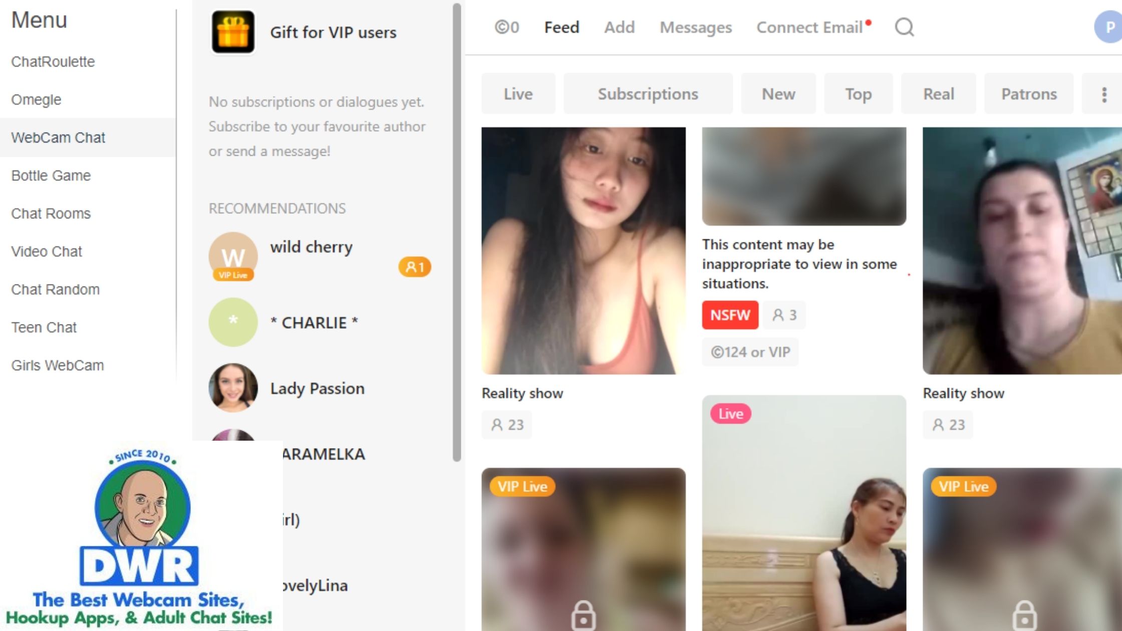 Webcam Chat – A click on this tab will take you to a shady webcam chat site. Here you can find lots of amateur girls streaming live from Asia. Beware of scammers before signing up at this unsafe webcam chat site.