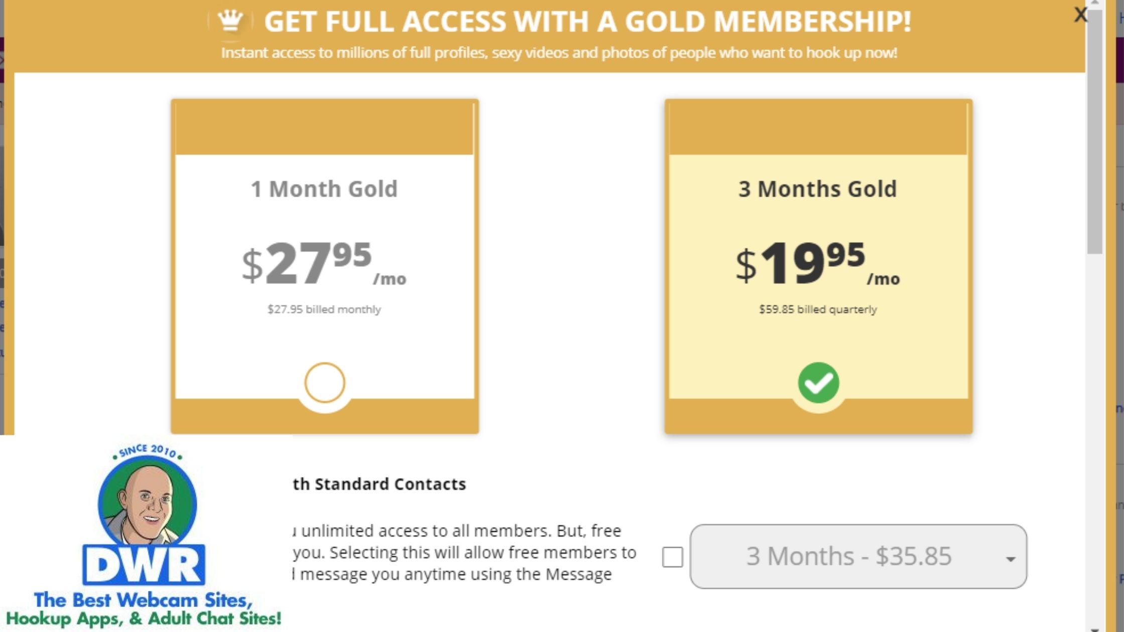 There’s only a little more that you can do with the gold membership on the site. You will be able to reach out to people via chat or webcam, only if they’re genuine. The membership currently has two pricing plans: a 1-month plan and a 3-month plan.