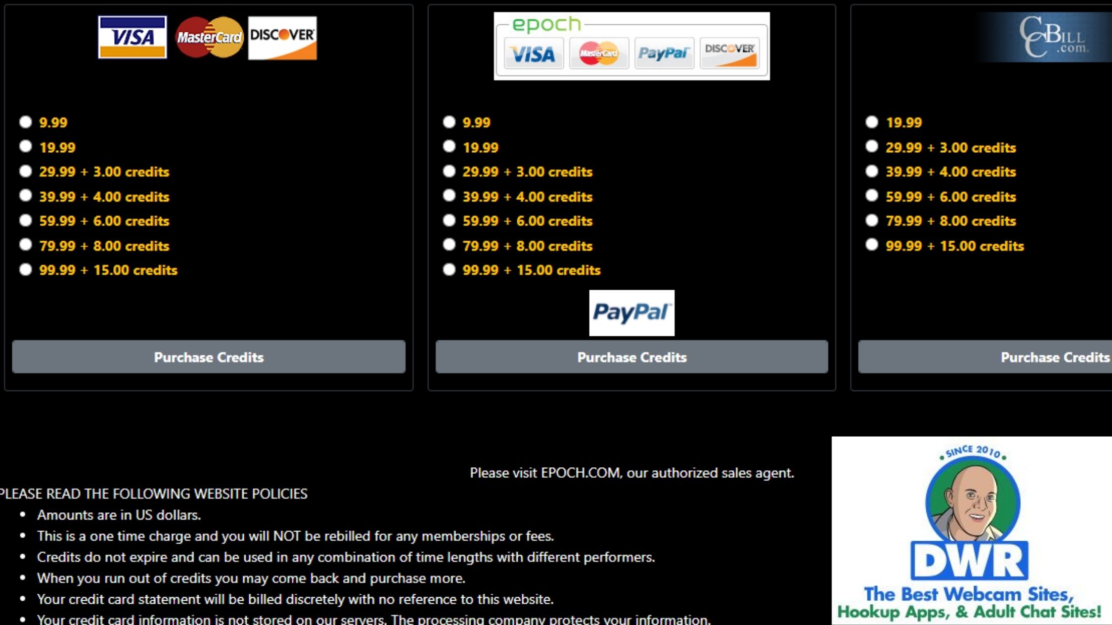 SexyAsianCams accepts Visa, Mastercard, Discover, and PayPal via Epoch and CCBill.