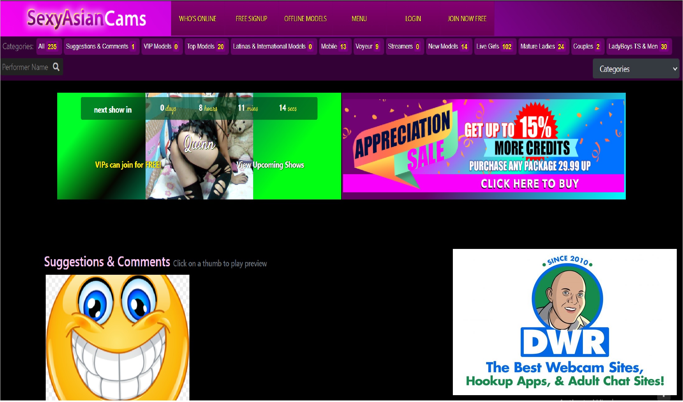 SexyAsianCams features live Asian cams, with most models hailing from the Philippines, so if you have a preference for hot Asians, it may pique your interest. Well, I have some bad news if this is the case.
