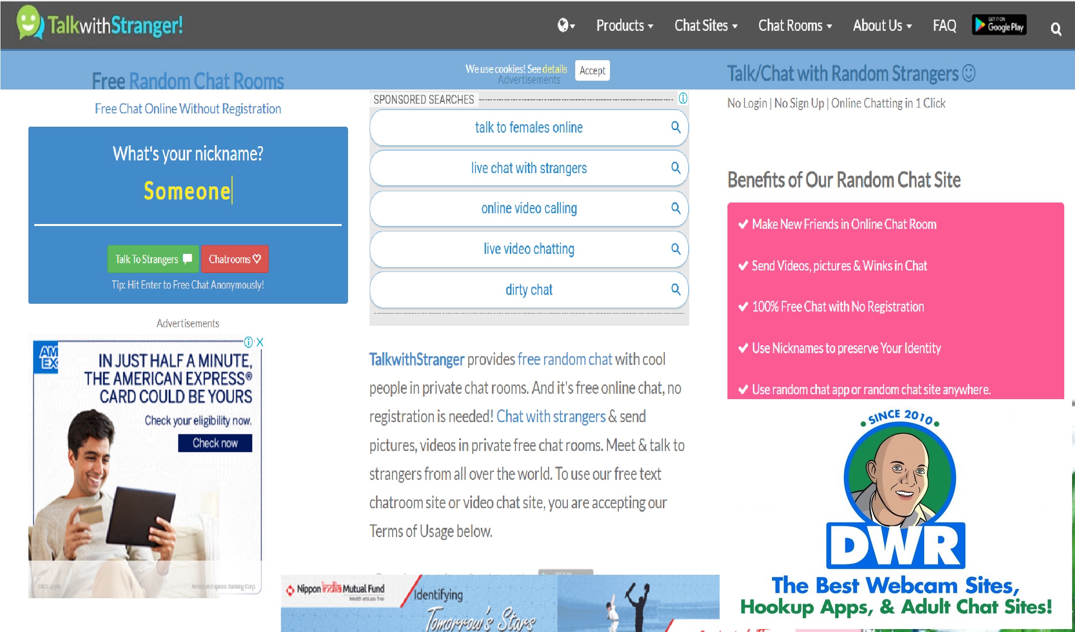 Right off the bat, TalkWithStranger bombards its guests with long paragraphs of information about its mission: to provide free online chat rooms for all.