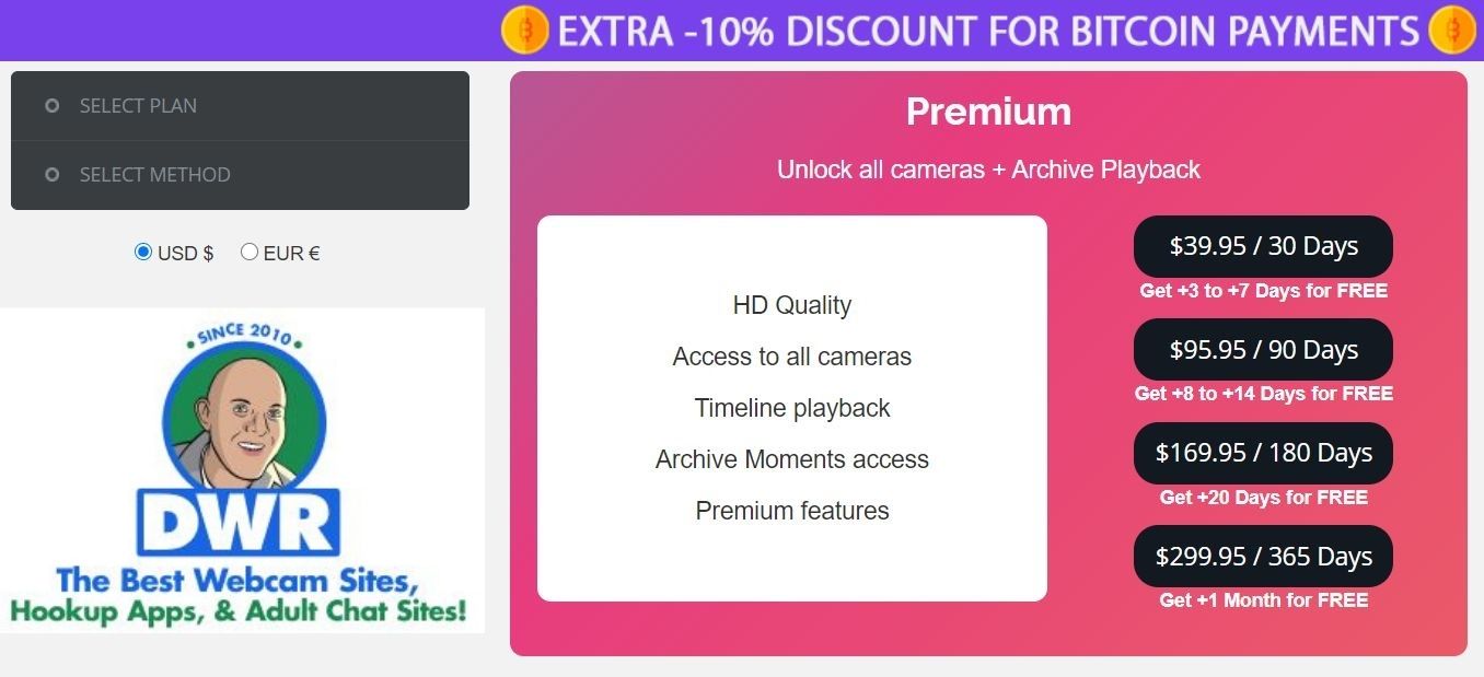 The premium membership unlocks all the features including HD streaming quality and the option to archive the voyeur videos. More details in the image below.